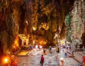 Zu Beginn der Tour besuchen Sie die berühmten Marmorberge (Ngu Hanh Son) nahe Danang. Die fünf Kalksteinberge sind nach den Elementen benannt und gelten als bedeutende spirituelle Stätte. Bei einem Rundgang erkunden Sie buddhistische Pagoden, Tempelhöhlen und genießen eindrucksvolle Ausblicke auf die Küste und die umliegende Landschaft.